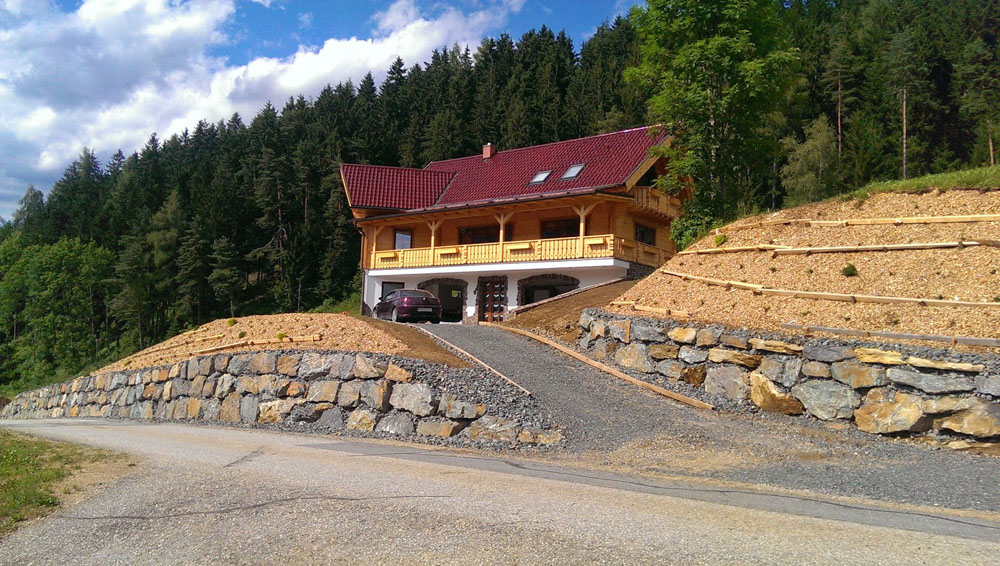 Hanglagen lassen sich hervorragend nutzen – die Voraussetzung ist jedoch eine zuverlässige Hangbefestigung. Wir führen diese durch bewehrte Erde, Spritzbeton sowie durch das Setzen von Steinmauern für Sie durch.